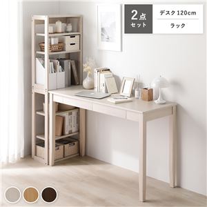 Office168天然木 デスクシリーズ 2点セット 〔 デスク 120cm幅 + ラック 〕 ホワイト デスクセット 学習机 引...