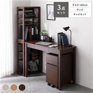 Office168天然木 デスクシリーズ 3点セット 〔 デスク 100cm幅 + ラック + キャビネット 〕 ブラウン デスク...