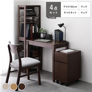 Office168天然木 デスクシリーズ 4点セット 〔 デスク 80cm幅 + ラック + キャビネット + チェア 〕 ブラウ...