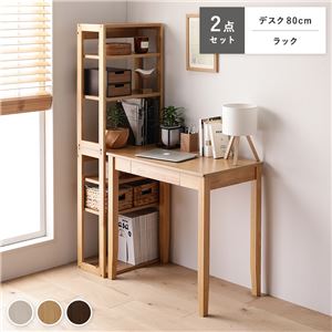 Office168天然木 デスクシリーズ 2点セット 〔 デスク 80cm幅 + ラック 〕 ナチュラル デスクセット 学習机 引...