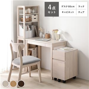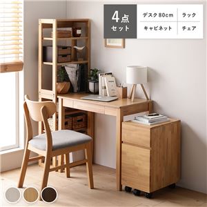 Office168天然木 デスクシリーズ 4点セット 〔 デスク 80cm幅 + ラック + キャビネット + チェア 〕 ホワイ...