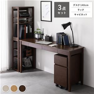 Office168天然木 デスクシリーズ 3点セット 〔 デスク 140cm幅 + ラック + キャビネット 〕 ブラウン デスク...