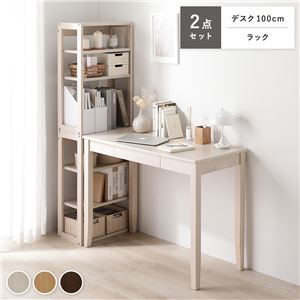 Office168天然木 デスクシリーズ 2点セット 〔 デスク 100cm幅 + ラック 〕 ホワイト デスクセット 学習机 引...