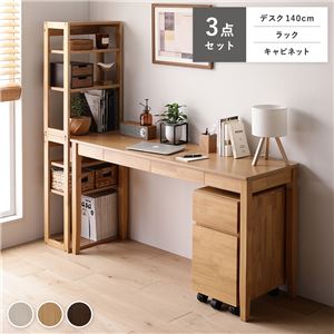 Office168天然木 デスクシリーズ 3点セット 〔 デスク 140cm幅 + ラック + キャビネット 〕 ナチュラル デス...