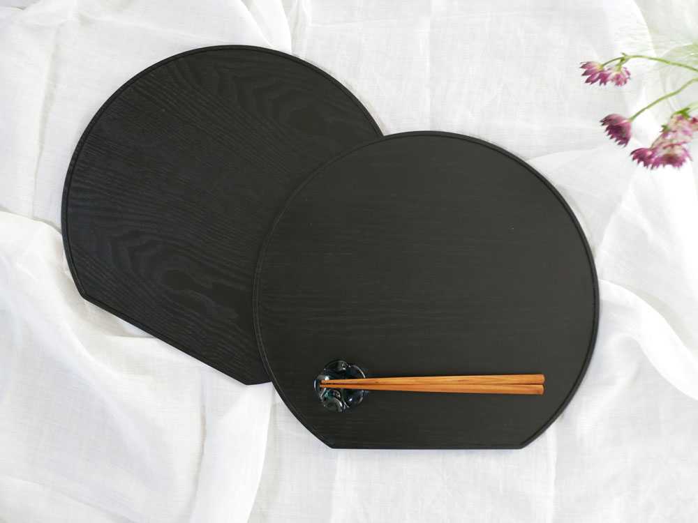 【HinataLife】スタッキングできる天然木の半月膳 2枚組 / ブラック
