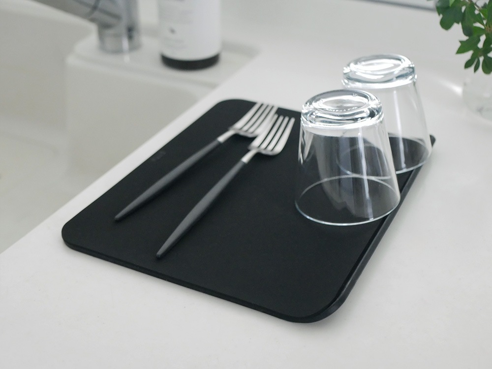 【stta/スッタ】超速乾・超吸水2way 水切りマット&クロス L ブラック