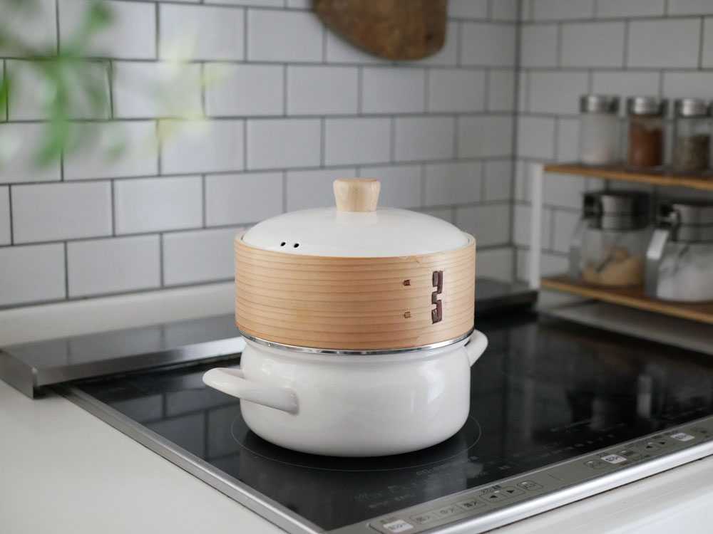 【富士ホーロー】せいろ付きホーロー鍋 18cm ホワイト