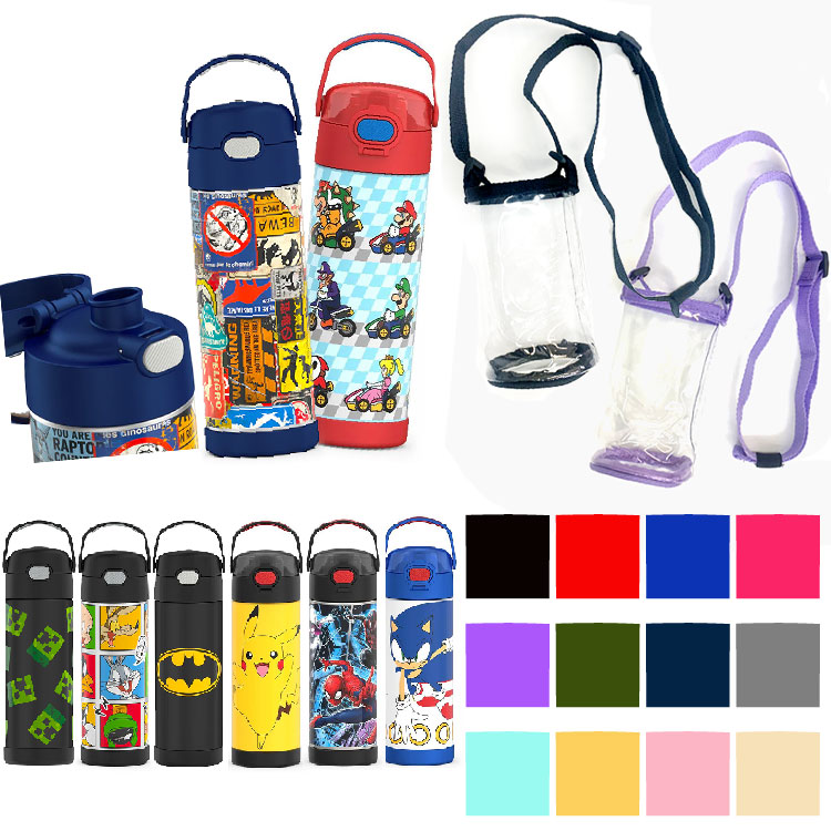 サーモス 水筒 子供 水筒カバーセット 直のみ ステンレス 470ml 水筒 肩ひも 透明 ストラップ 男の子 女の子 ディズニー...