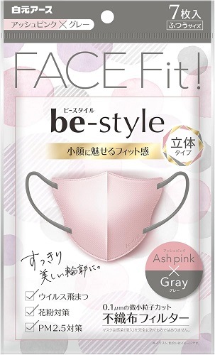 be-style ビースタイル 立体マスク ふつうサイズ アッシュピンク×グレー 7枚入【ネコポス】送料無料 バイカラー おしゃれ...