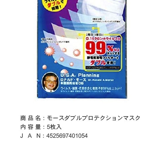 【在庫あり】【 即納!】モースダブルプロテクション N99規格 ウィルス対策高機能マスク レギュラーサイズ 5枚入