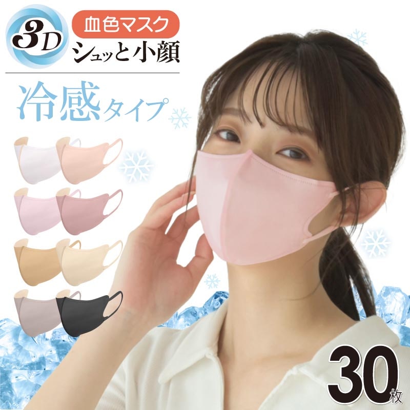 【マスク工業会正会員 日本カケン認証あり JIS 1000円ポッキリ 送料無料】3Dマスク 冷感マスク 立体マスク 30枚 血色マ...