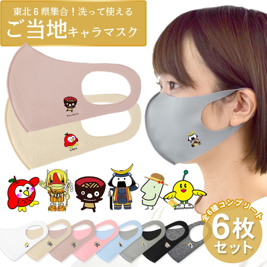 マスク 洗えるマスク 6枚セット ご当地 コラボ 東北 ご当地キャラ ゆるキャラ 大人用 立体マスク 【送料pt100】