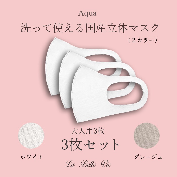 Aqua 国産立体マスク 大人用3枚 セット布マスク 【10126506】*送料無料(レターパックライト)