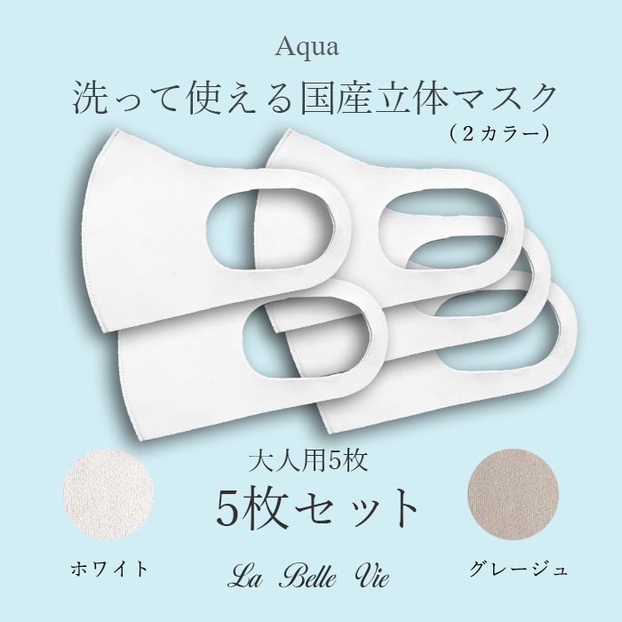 Aqua 国産立体マスク 大人用5枚 セット布マスク 【10126507】*送料無料(レターパックライト)