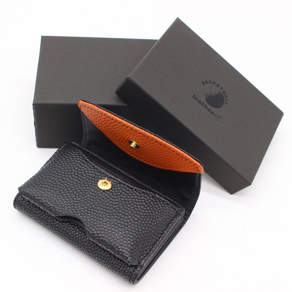 【最新作】バスケ革 ブラック ミニ財布 三つ折り メンズ レディース ナダヤスポーツ※名入れ不可商品 [basket-miniwa...