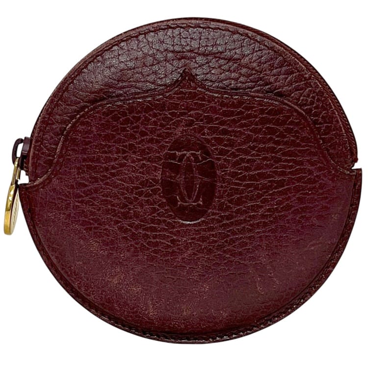 カルティエ コインケース ボルドー マスト 小銭入れ レザー 中古 Cartier ファスナー ラウンド ワンポイント ロゴ 財布...