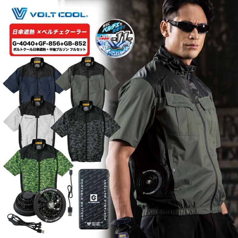 G-4040+GF-856+GB-852 ボルトクール 日傘遮熱半袖ブルゾン+ファン+バッテリー フルセット 袖ブルゾン ファン ...