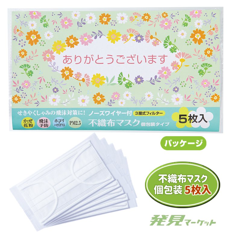 「ほんの気持ちです」不織布マスク(個包装マスク5枚入)