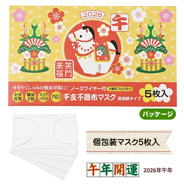 「健康長寿」不織布マスク(個包装マスク5枚入)