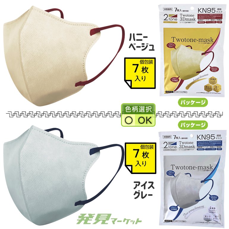 ツートン立体不織布マスク7枚入(個包装) (色選択)