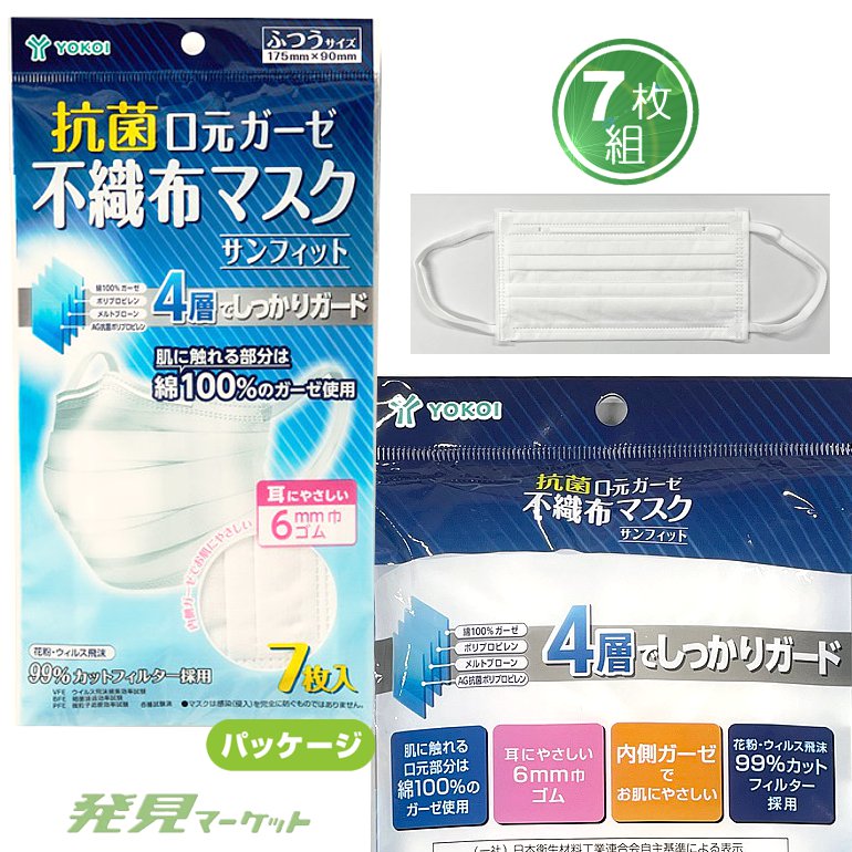 抗菌口元ガーゼ不織布マスク7枚入 ふつうサイズ