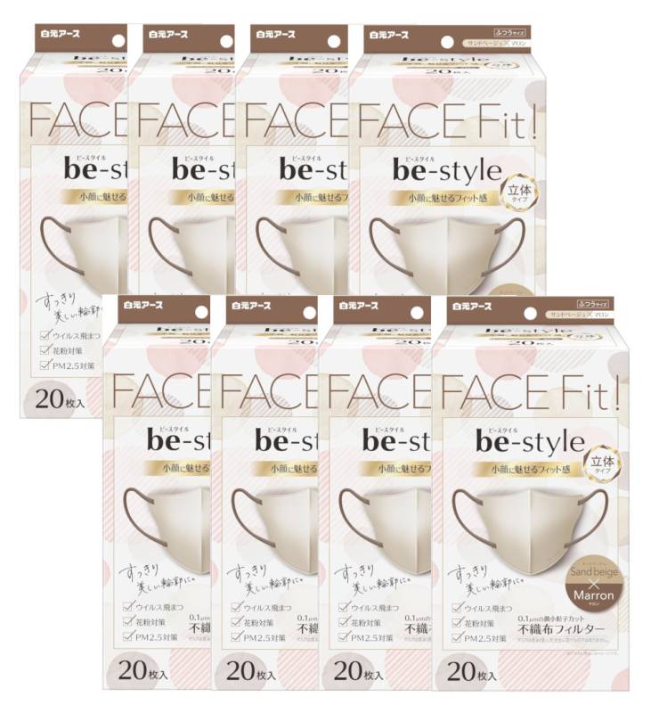 be-style ビースタイル 立体マスク ふつうサイズ サンドベージュ×マロン 20枚入×8【8個セット】送料無料 バイカラー ...