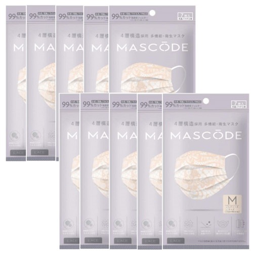 不織布マスク マスコード MASCODE ユニセックス レース コーラルピンク M×10【10個セット】カラーマスク おしゃれ ...