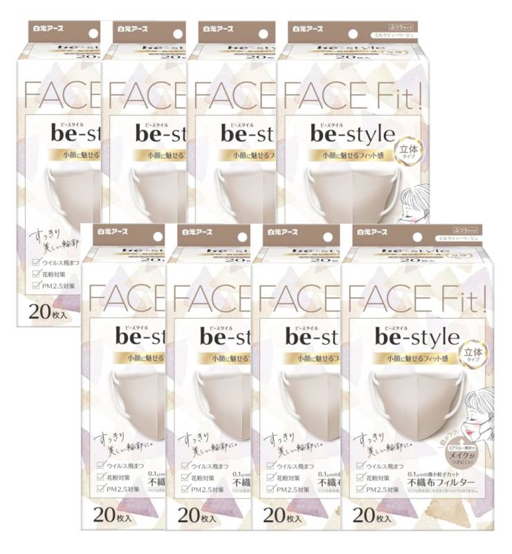be-style ビースタイル 立体マスク ふつうサイズ ミルクティーベージュ 20枚入×8【8個セット】送料無料 メイクがつきに...