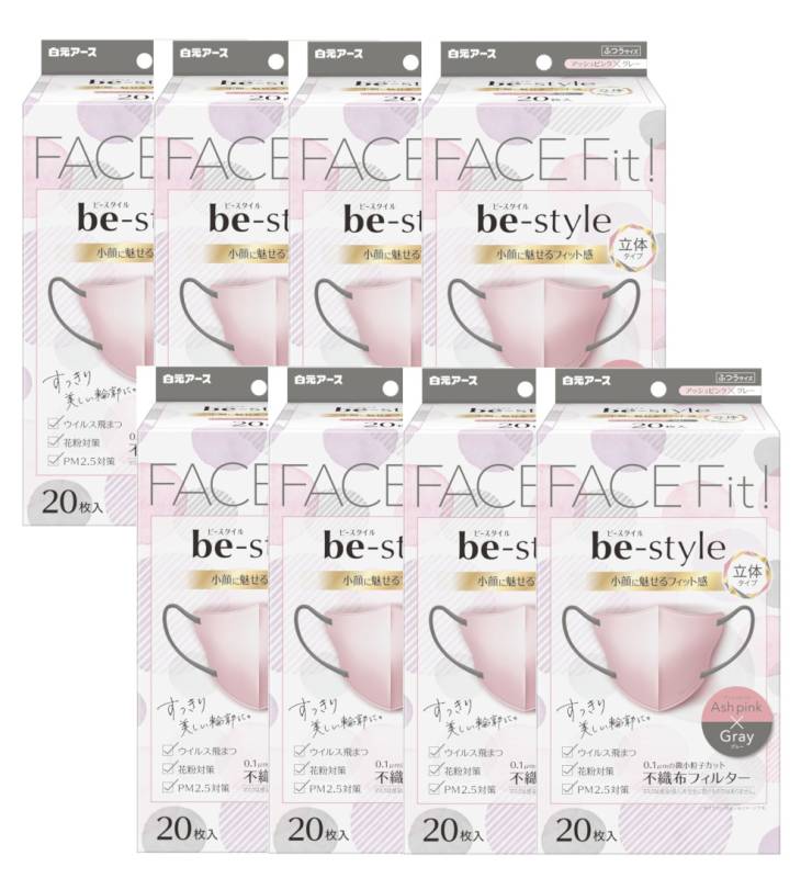 be-style ビースタイル 立体マスク ふつうサイズ アッシュピンク×グレー 20枚入×8【8個セット】送料無料 バイカラー ...