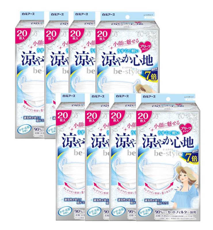 ビースタイル プリーツタイプ 涼やか心地 ホワイト 20枚入×8【8個セット】送料無料 夏用マスク 女性用 涼しい 小顔 おしゃれ...