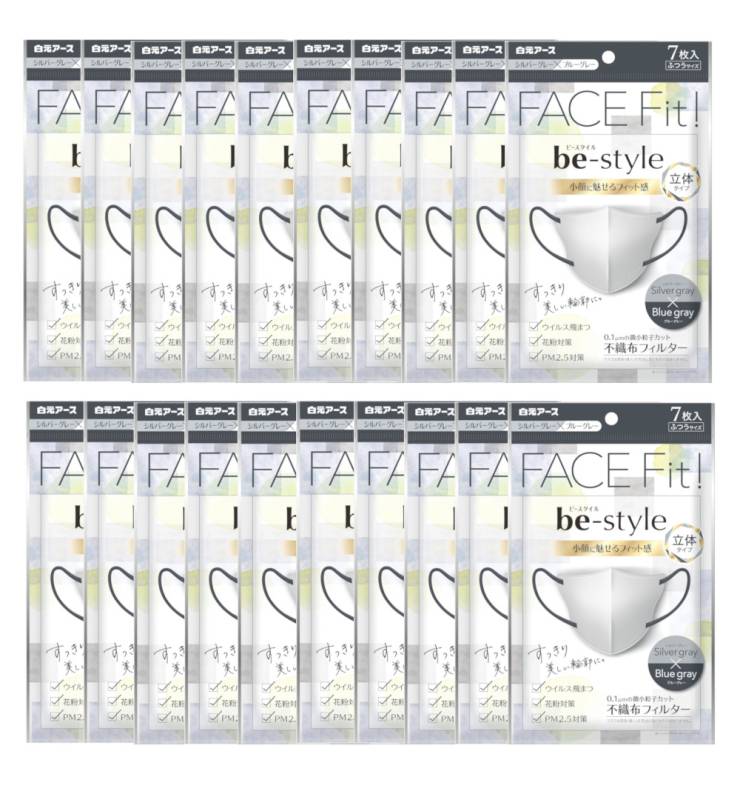 be-style ビースタイル 立体マスク ふつうサイズ シルバーグレー×ブルーグレー 7枚入×20【20個セット】送料無料 バイ...