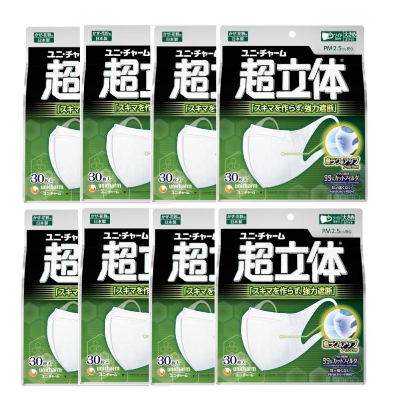 不織布マスク 超立体マスク 風邪・花粉用 不織布 大きめ 30枚×8【8個セット】 送料無料 ユニ・チャーム