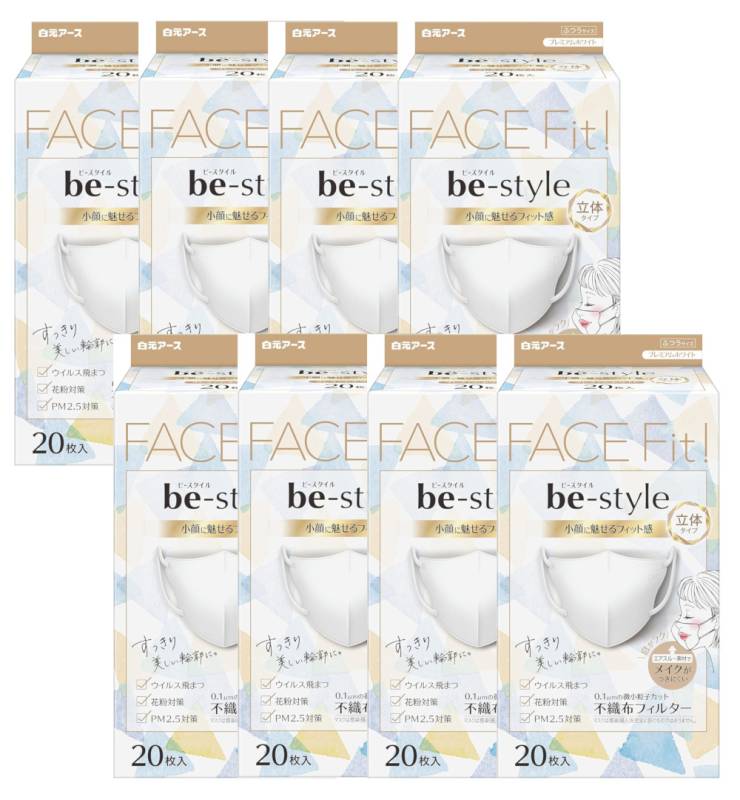 be-style ビースタイル 立体マスク ふつうサイズ プレミアムホワイト 20枚入×8【8個セット】送料無料 メイクがつきにく...