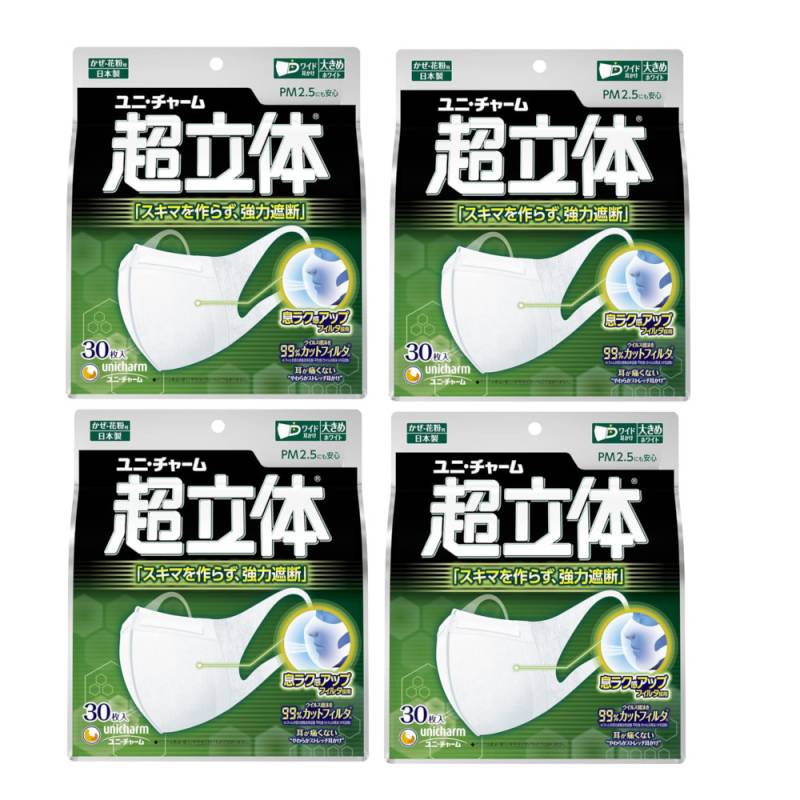不織布マスク 超立体マスク 風邪・花粉用 不織布 大きめ 30枚×4【4個セット】 送料無料 ユニ・チャーム