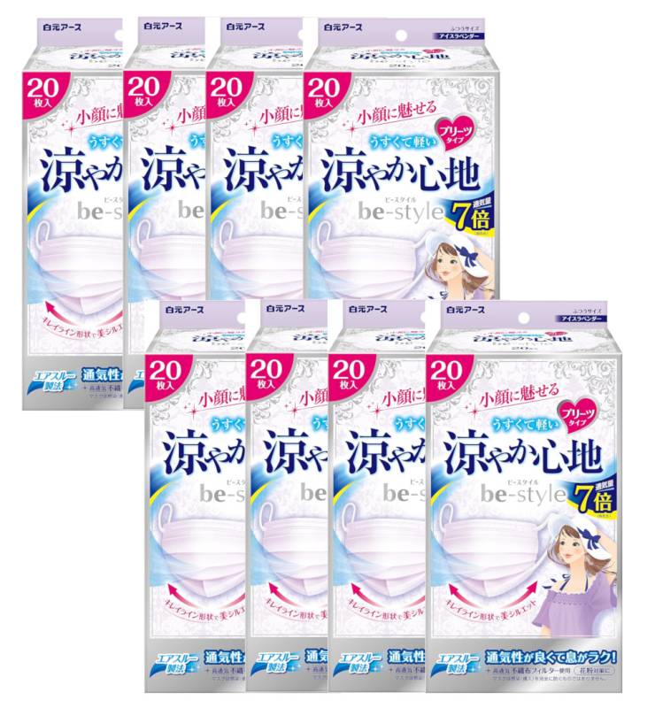 ビースタイル プリーツタイプ 涼やか心地 アイスラベンダー 20枚入×8【8個セット】送料無料 夏用マスク 女性用 涼しい 小顔 ...