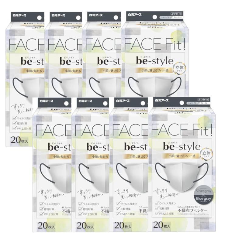 be-style ビースタイル 立体マスク ふつうサイズ シルバーグレー×ブルーグレー 20枚入×8【8個セット】送料無料 バイカ...
