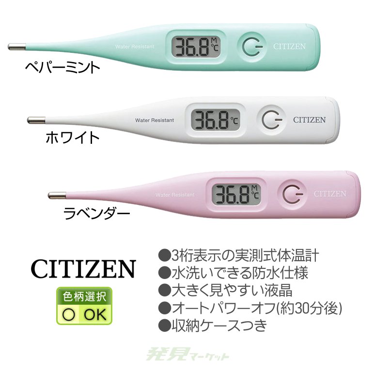 シチズン体温計CT422ホワイト実測式 CITIZEN 防水 抗菌 実測式 脇 口内用 水洗い 防水機能 電子体温計 収納ケース...