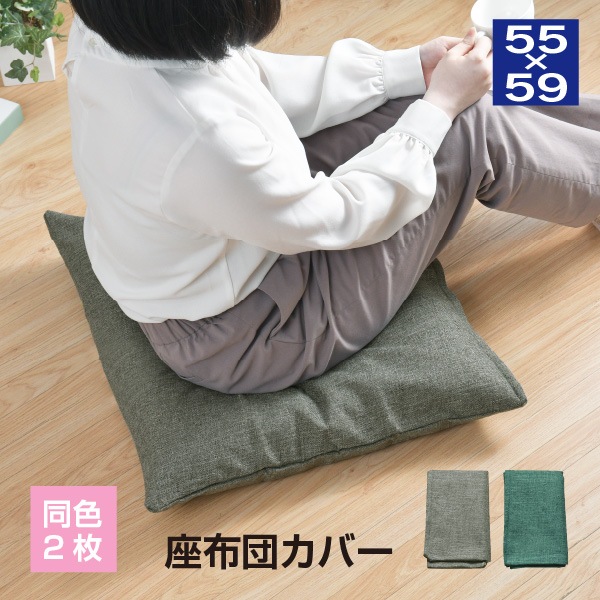 銘仙判座布団カバー 帆布生地 約55×59cm【同色2枚セット】 無地 お得 2枚組 おしゃれ 洗える ウォッシャブル 銘仙判