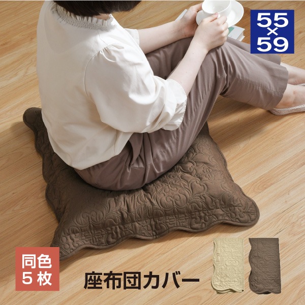 銘仙判 座布団カバー 超音波キルト加工柄 約55×59cm フリル付き 【同色5枚セット】