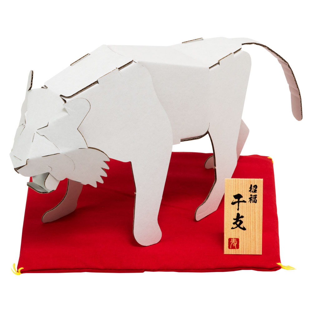 ダンボール干支工作キット 寅(虎) 令和四年(2022年) 赤座布団セット のりもはさみも使わずに組み立てられるペーパークラフト ...