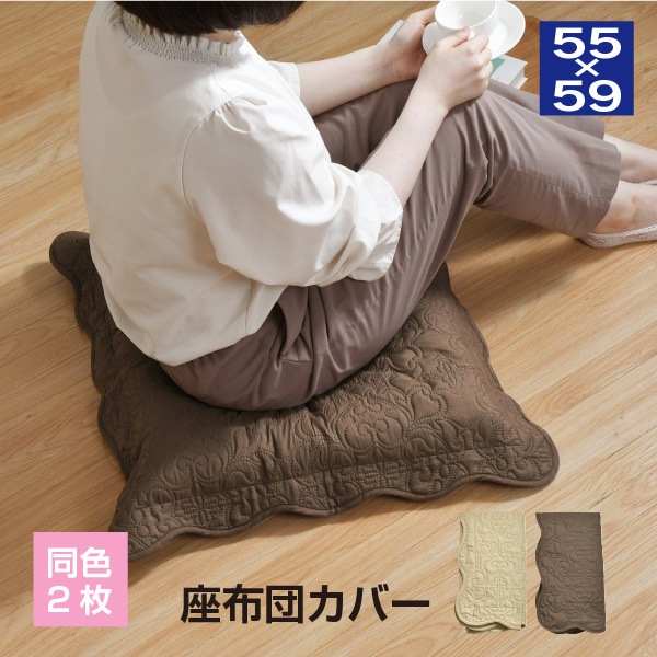 銘仙判 座布団カバー 超音波キルト加工柄 約55×59cm フリル付き 【同色2枚セット】