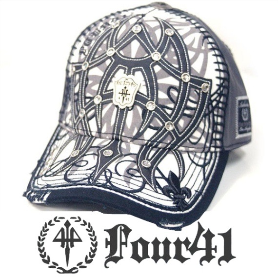 Four41 Los Angeles フォーフォーティーワン キャップ スワロフスキー ブラック ウォッシュ グレー 053 イン...
