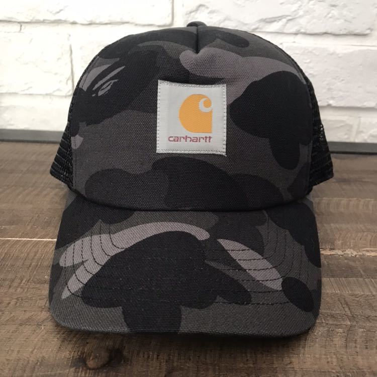 ★美品★ carhartt × bape スナップバック キャップ black camo カーハート a bathing ape ...
