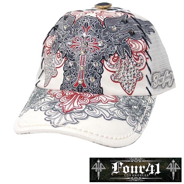 Four41 Los Angeles フォーフォーティーワン キャップ スワロフスキー ホワイト 064 インポート メンズ レデ...
