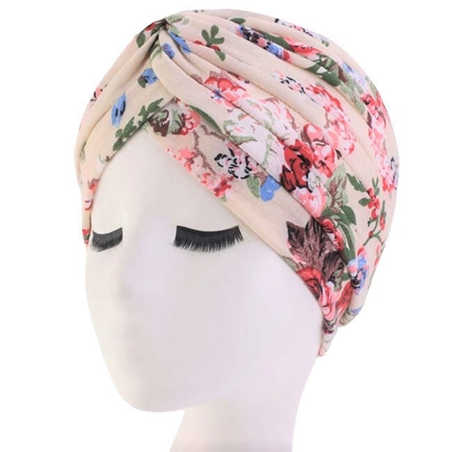 【抗がん剤治療】【医療用帽子】【ケア帽子】 ターバンキャップ:ベージュフラワー