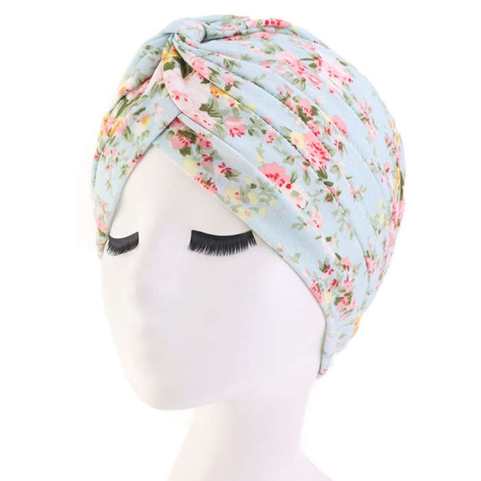 【抗がん剤治療】【医療用帽子】【ケア帽子】 ターバンキャップ:スカイフラワー