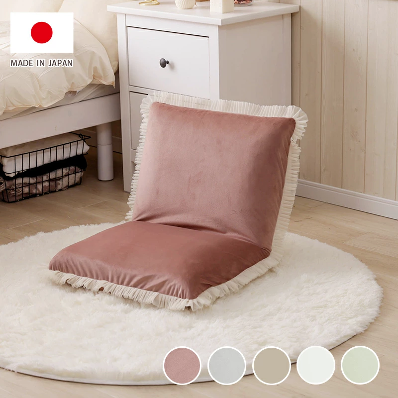 座椅子 おしゃれ コンパクト くすみカラー フリル ベロア プリーツ レース チュール生地 上品 高級感 大人かわいい