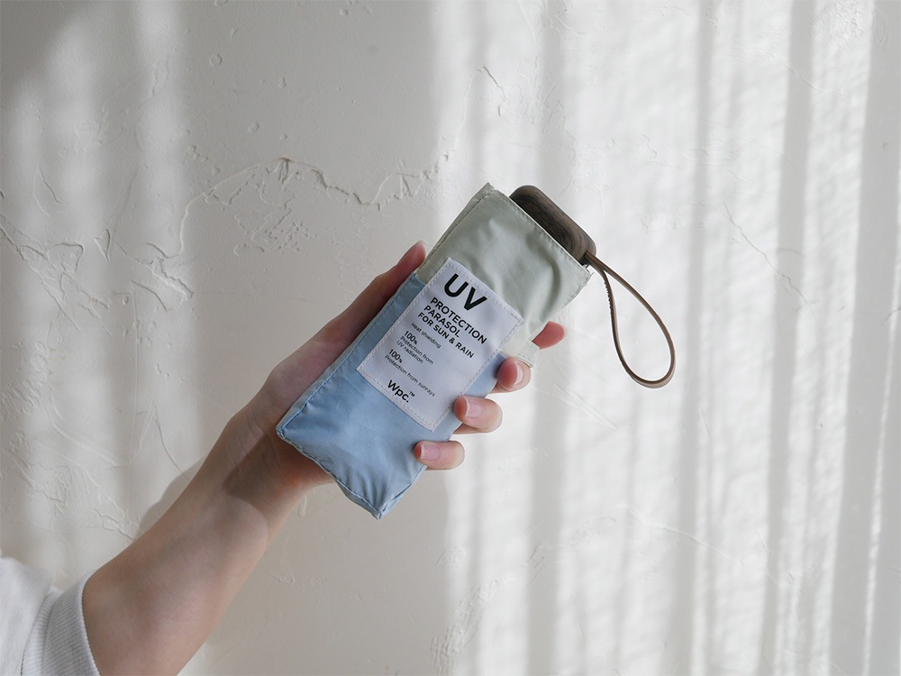 【Wpc./ダブリュピーシー】日陰を持ち歩く スマホサイズの折りたたみ傘 サックス