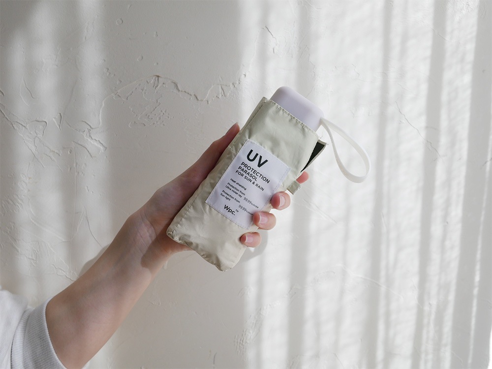 【Wpc./ダブリュピーシー】日陰を持ち歩く スマホサイズの折りたたみ傘 ベージュ