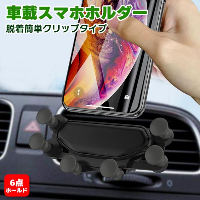 車載 スマホホルダー 6点固定 重力式 エアコン 吹き出し口 クリップ 衝撃吸収 パッド スプリング 新品 カー用品 アクセサリー...